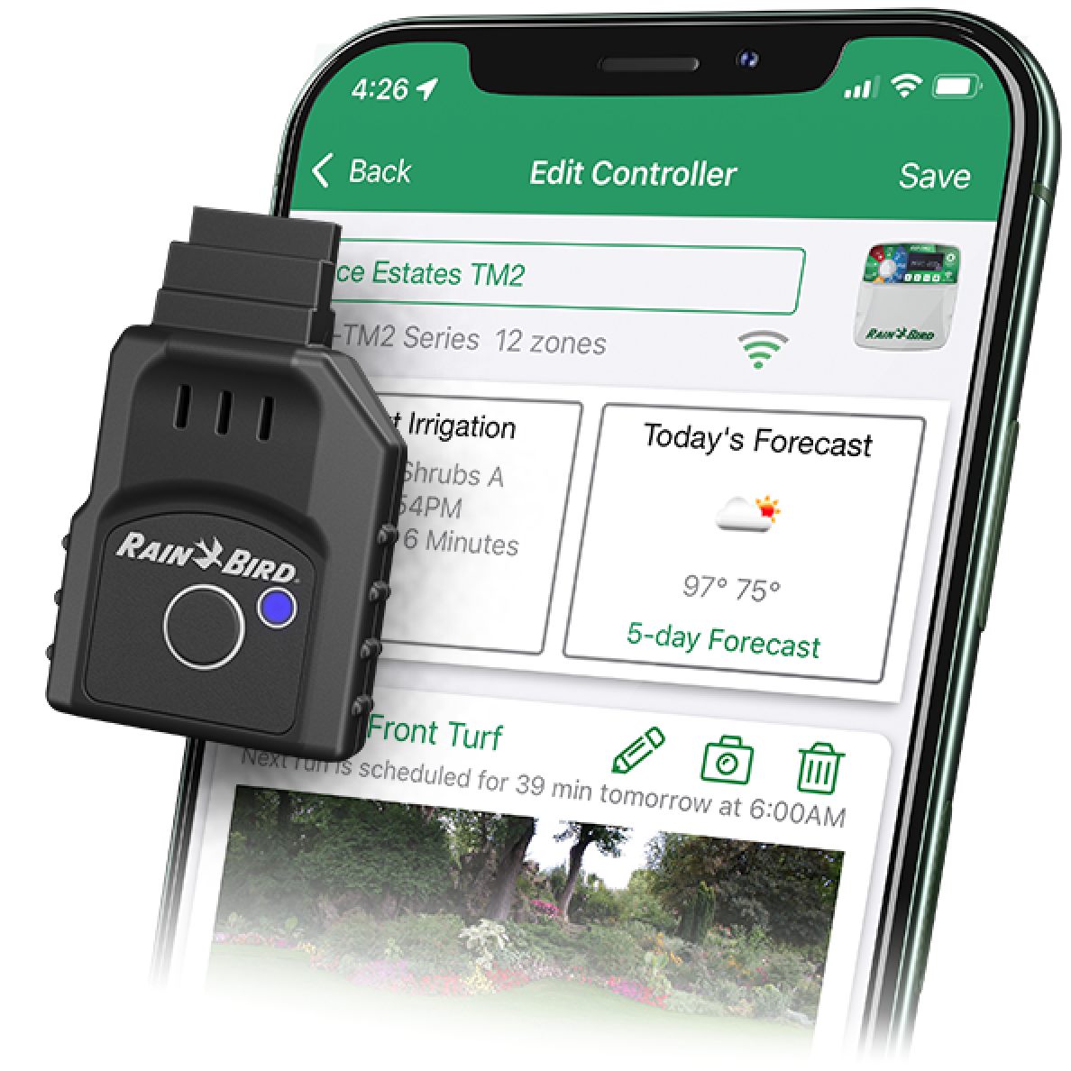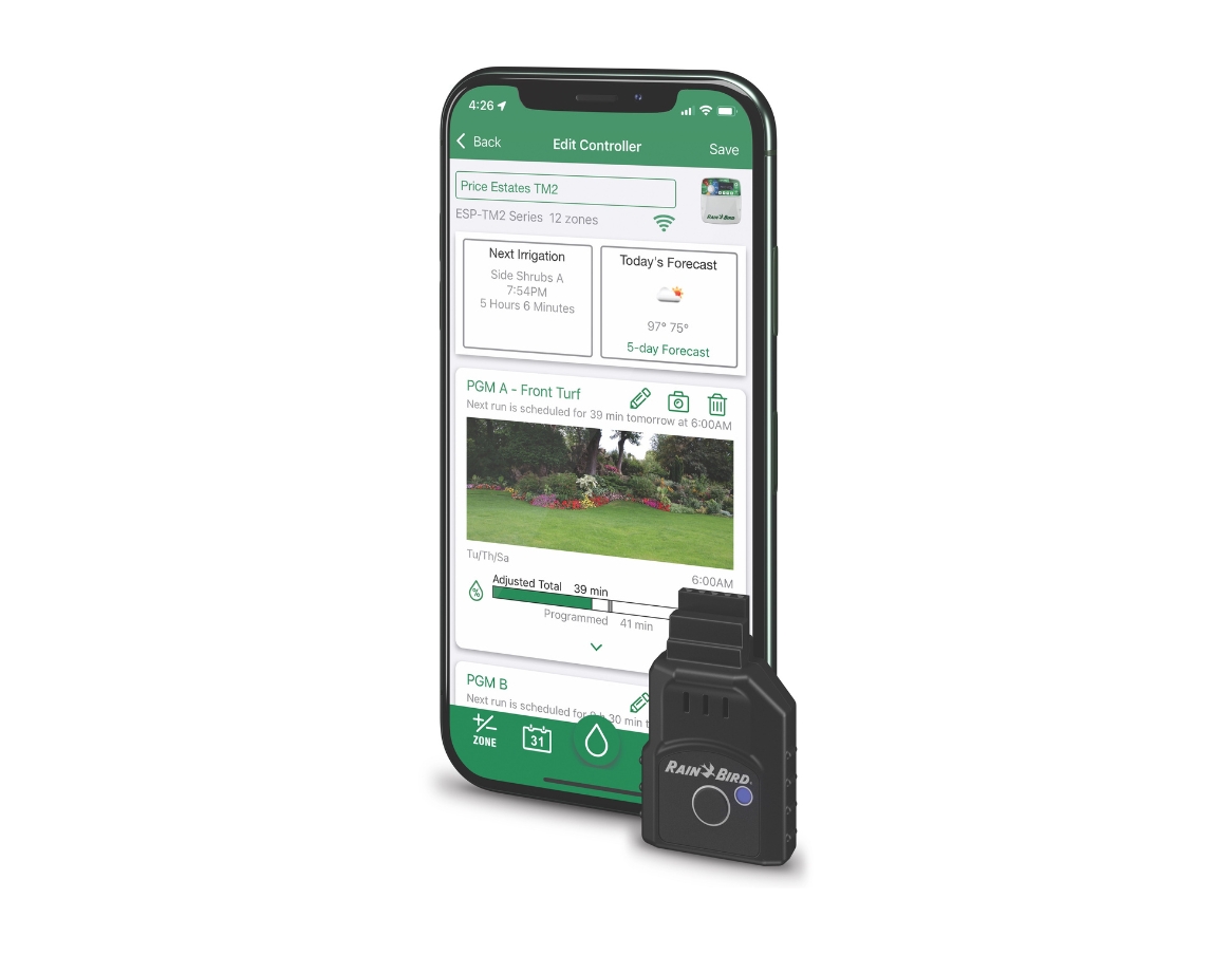 Que vous soyez un utilisateur averti des produits de la marque, ou un débutant, vous prendrez aisément en main la connexion wifi Rain Bird via le module pour faciliter votre arrosage automatique. Grâce à ses nombreuses fonctionnalités, l’application vous permet de gérer plusieurs sites en toute tranquillité et à distance. En cas de problème sur vos zones d’arrosage ou de prévision de gel, vous êtes instantanément averti par notification.