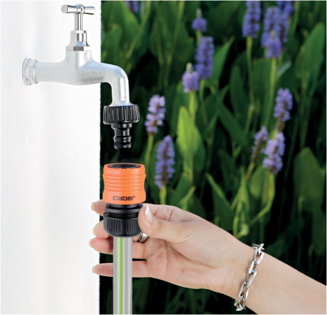 Raccord à vis pour robinet avec filetage 1/2’’ (15/21 mm), simple d’installation sans outils, haute qualité, de la marque Claber