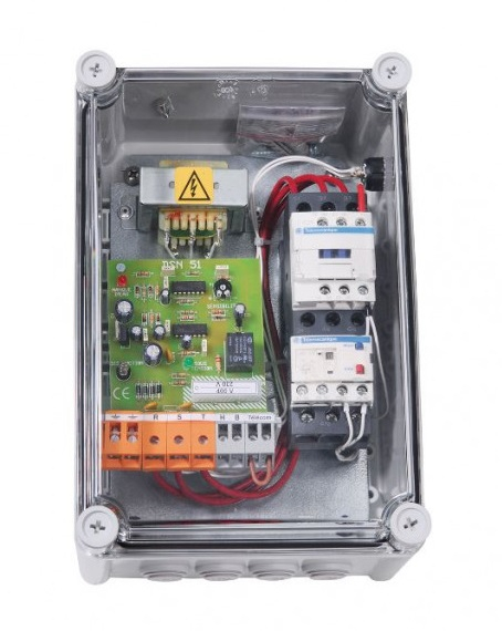 - Fonctionne avec flussostat ou contacteur manométrique inversé