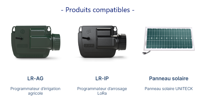 | Compatibilité | Programmateurs LR-IP et LR-AG Solem |
