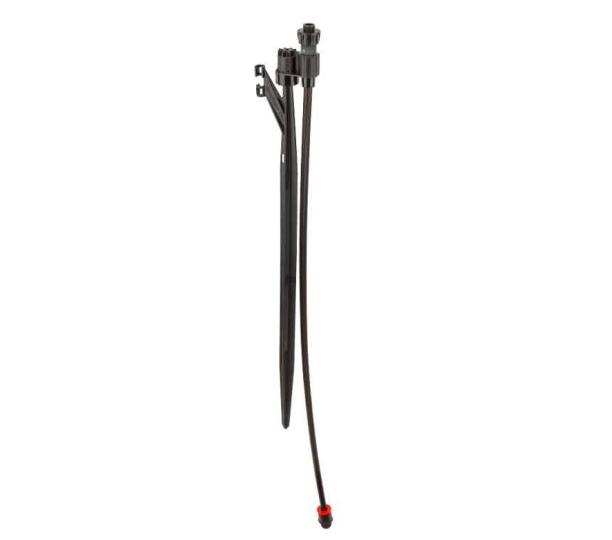 Ce kit complet, également nommé "Piquet complet", intègre tous les éléments nécessaires : un piquet de 66 cm de hauteur, un adaptateur pour buse, un tubing de 9 mm et un raccord fileté 1/2 pouce pour une connexion simple et fiable à votre ligne d'eau.