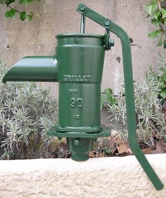 La pompe manuelle fonctionne automatiquement grâce à un piston qui remonte l'eau à la surface. Avec une limite d'aspiration de 10 mètres en raison de la dépendance à la pression atmosphérique.