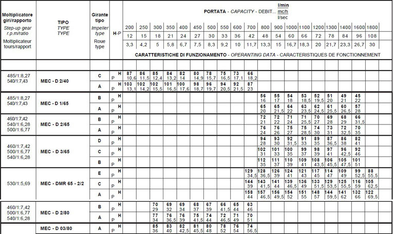 Les pompes MEC D à multiplicateur pour tracteurs sont conçues pour le pompage d’eau sur des installations mobiles ou semi mobile, sur des engins équipés d'une prise de force des moteurs thermiques (ex.: camion citerne pour la distribution d’eau potable).