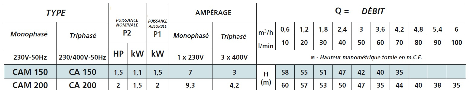 Les avantages des pompes auto-amorçantes de la série CAM 200 :