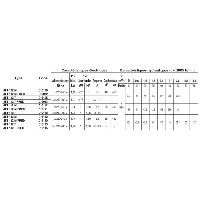 JET 102 - 132 auto-amorçantes (jusqu'à5m3/h)