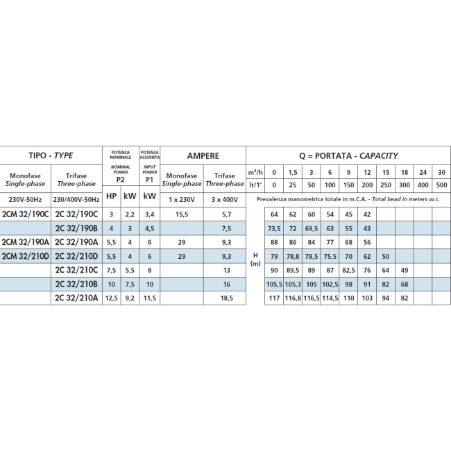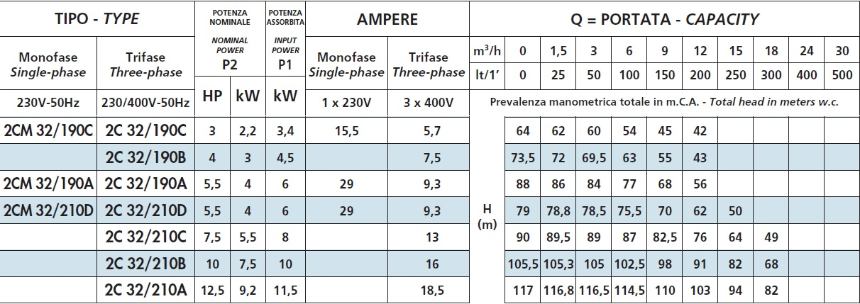 Les électropompes centrifuges bicellulaires de la série 2C 32, permettent d’importantes hauteurs d’élévation, grâce à la présence de deux rotors opposés. Elles sont idéales pour de nombreuses applications domestiques et industrielles.