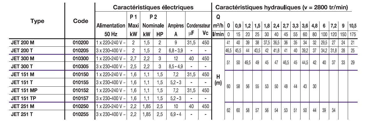 JET 151 - 251 pompes bicellulaires auto-amorçantes (jusqu\'à7m3/h)