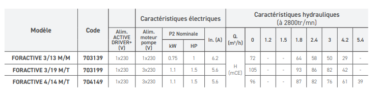 | Référence pompe immergée | Foractive DCS4 (1.2 à 6 m3/h) |