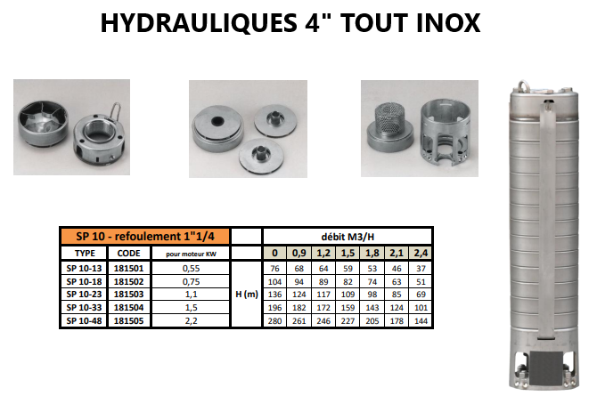 Pompe de forage 4 pouces tout Inox - Gamme SP 10 Triphasée