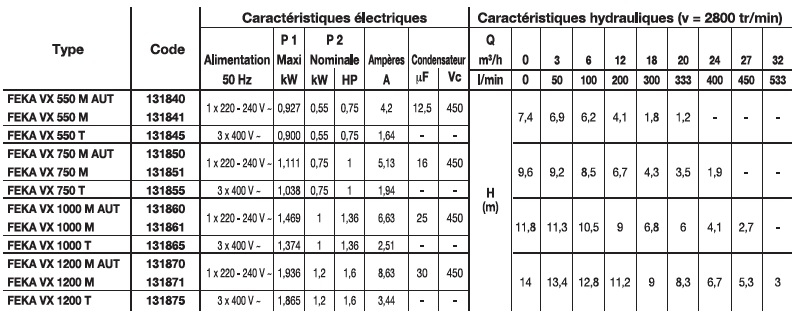 | Pompes de relevage | FEKA VX |