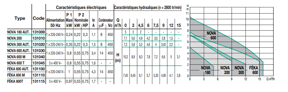 | Inclus | Câble d'alimentation 5m + flotteur + prise d'alimentation standard et terre 230V. |