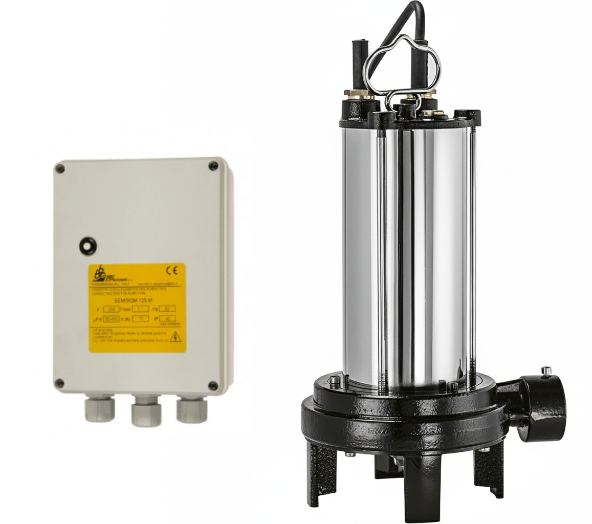 Pompe de relevage dilacératrice non automatique avec coffret de démarrage pour eaux chargées.