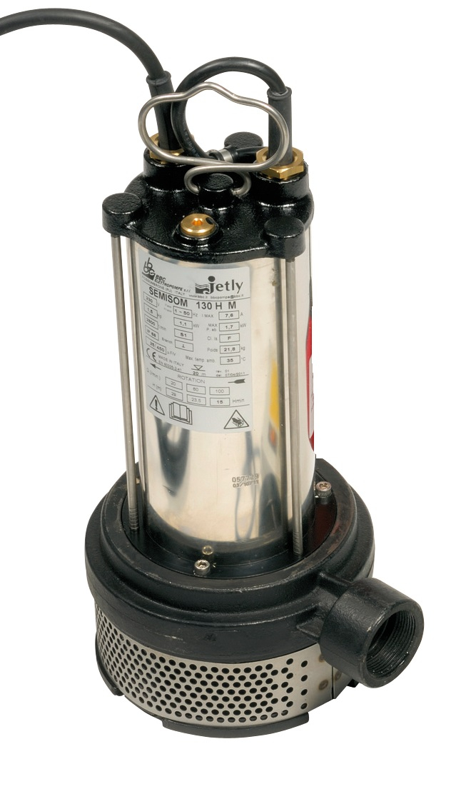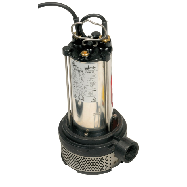 Les pompes Semisom sont adaptées au relevage des eaux claires, d’infiltration, de drainage et de pluie pouvant contenir des corps solides jusqu’à 5 mm de diamètre. Sa grande hauteur manométrique (jusqu'à 30 mètres) rend cette pompe idéale pour des jeux d’eaux, des fontaines ou toute autre application de relevage d’eaux claires. Dotée d'un double système d’étanchéité entre la partie pompe et la partie moteur par garniture mécanique et joint à lèvre. Sortie horizontale en 1"1/2. Moteur de type submersible, asynchrone à bain de liquide réfrigérant avec rotor en court circuit. Roulement à billes lubrifiés par l’huile. Livrées avec 10 mètres de câble en 4 x 1 mm². Version triphasée sans commande automatique.