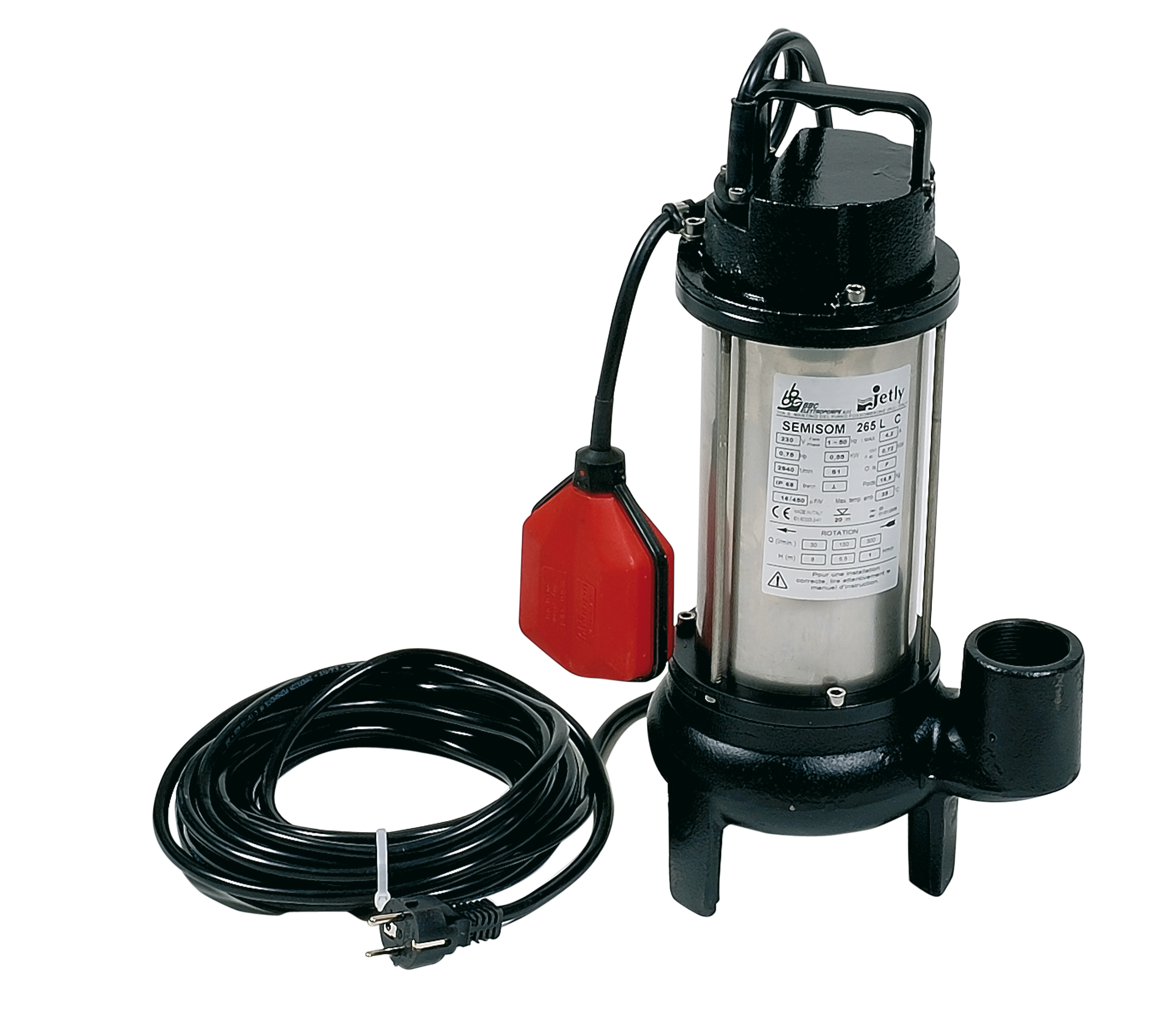 Pompe de relevage SEMISOM 265 automatique Monophasée à sortie verticale pour le relevage des eaux usées, de la marque Jetly