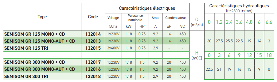 Pompe de relevage SEMISOM 300 GR Auto Mono +CD