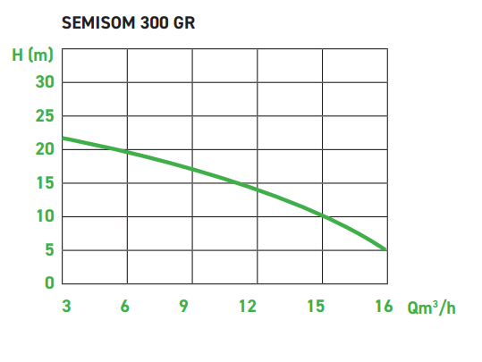 - Débit max. (Q m³/h) / Hauteur max. (H m) : 6,6 m³/h à 3 m