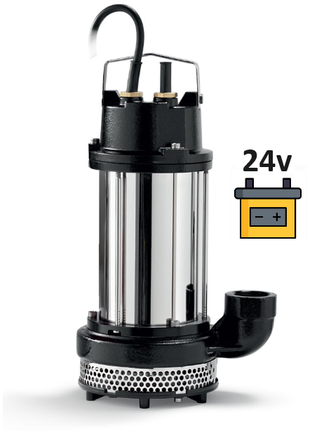 Pompe de relevage pour eaux claires, usées ou chargées.Alimentation 24V à partir de batteries, panneaux photovoltaïques ou toute source d'alimentation à courant continu.