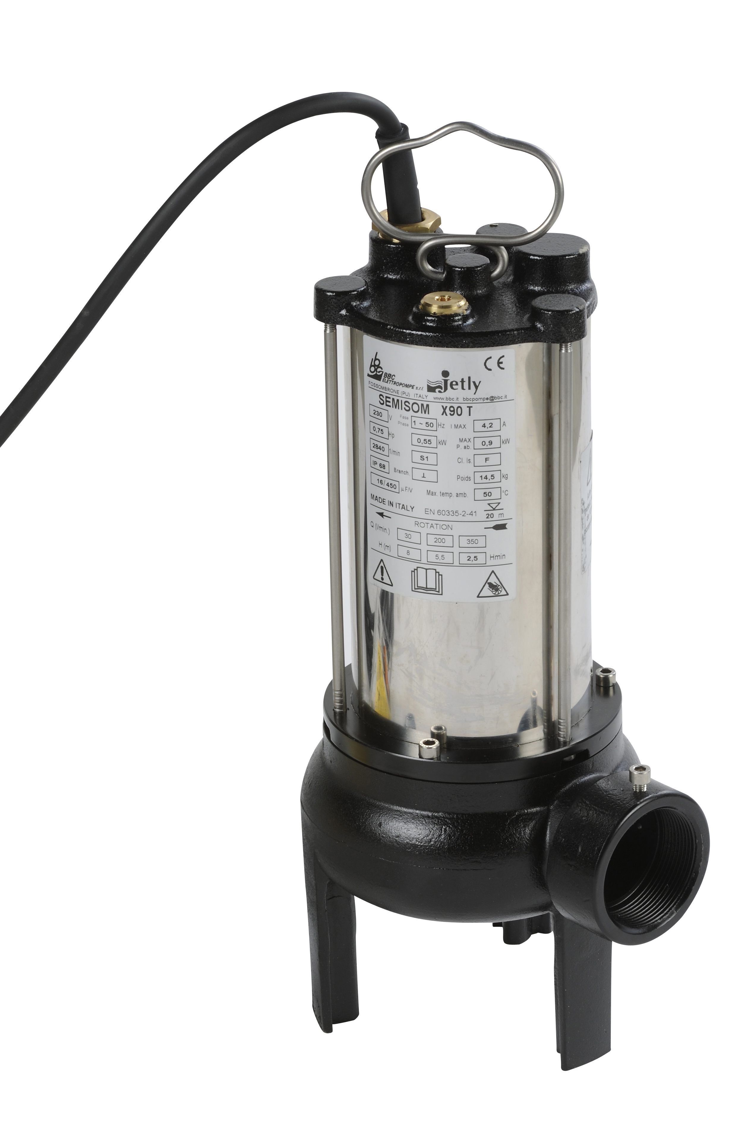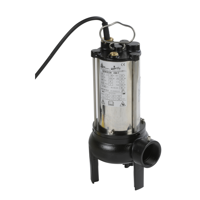 Pompe de relevage SEMISOM 490 Triphasée, sortie horizontale, en applications domestique, eaux usées, de la marque Jetly