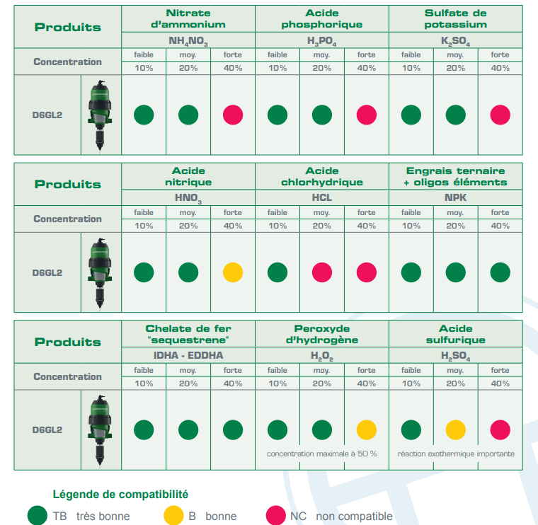 - Polyvalence : compatible avec une large gamme de fertilisants et d'additifs.