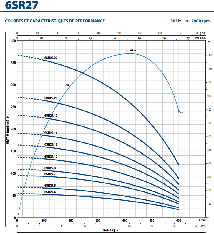 Les avantages des pompes immergées 6’’ multicellulaires série 6SR 27 :