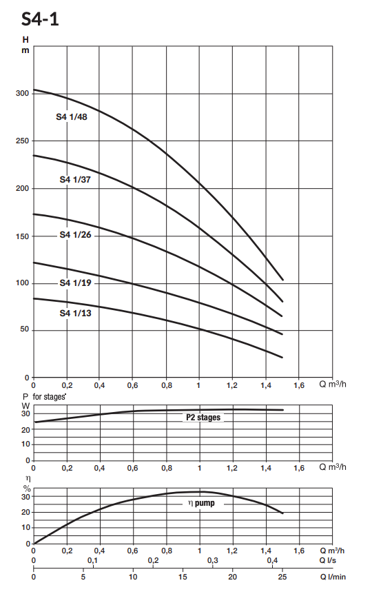 | Type de pompe immergée | S4A (0,6 à 1,5 m3/h) |