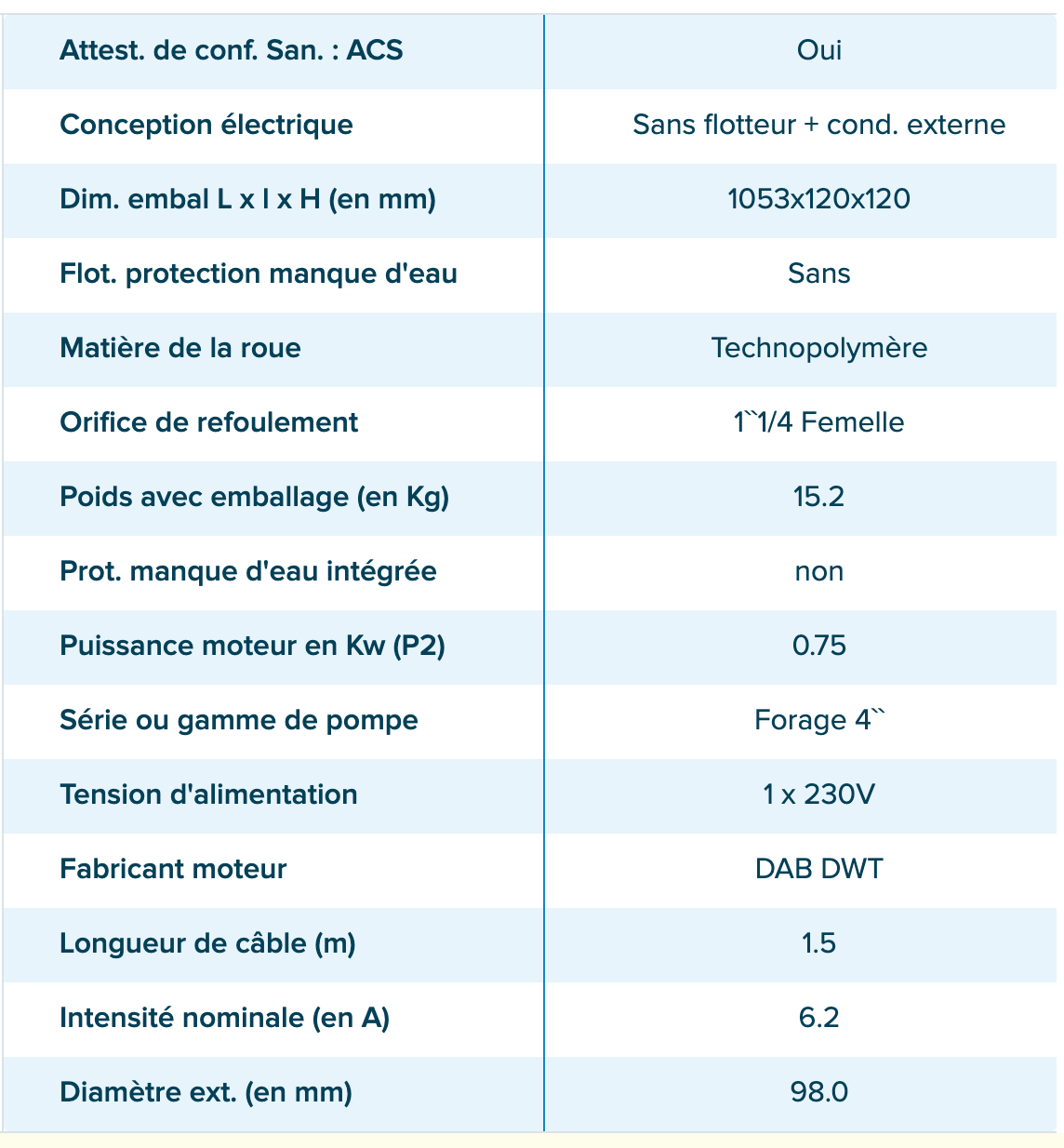 - De type submersible, asynchrone à 2 pôles, de marque DAB .