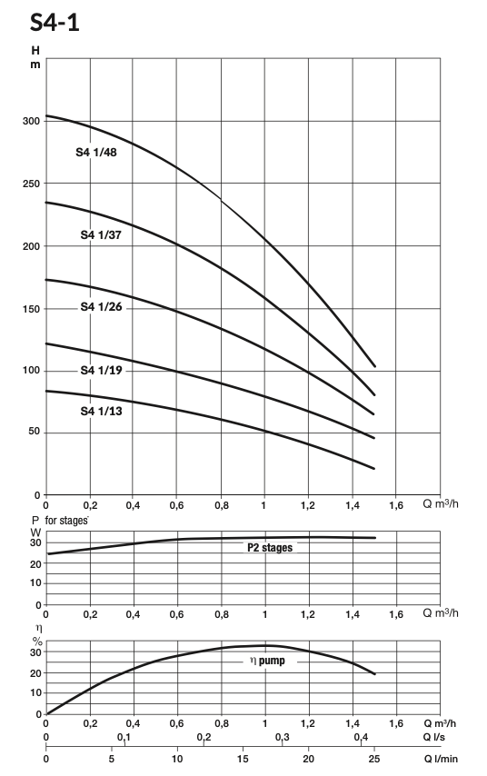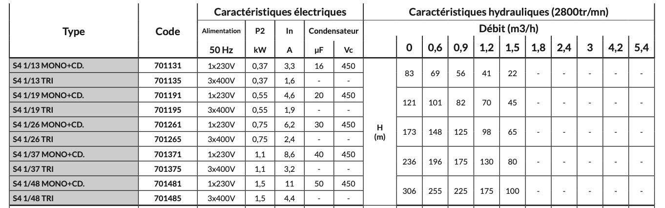 | Type de pompe immergée | S4 1/26, S4 1/37, S4 1/48 |
