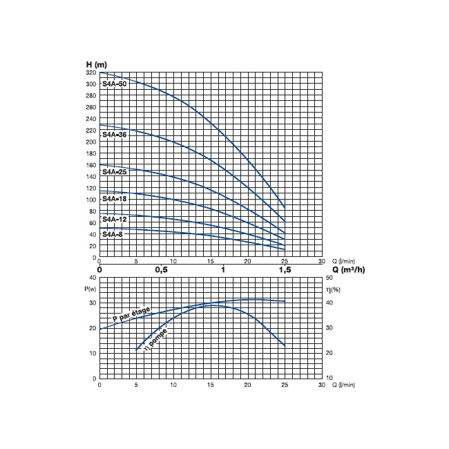 | Type de pompe immergée | S4A (0,6 à 1,5 m3/h) |
