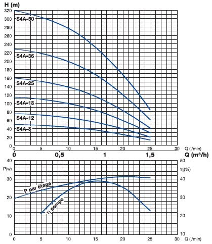 | Type de pompe immergée | S4A (0,6 à 1,5 m3/h) |