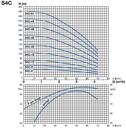 - Débit : 1,2 à 4,2 m3/h - Hmt : 13 à 210 m - Puissance : 0,37 à 2,2 Kw Mono