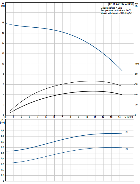 | Type de pompe immergée | SP 11 (1,8 à 14 m3/h) |