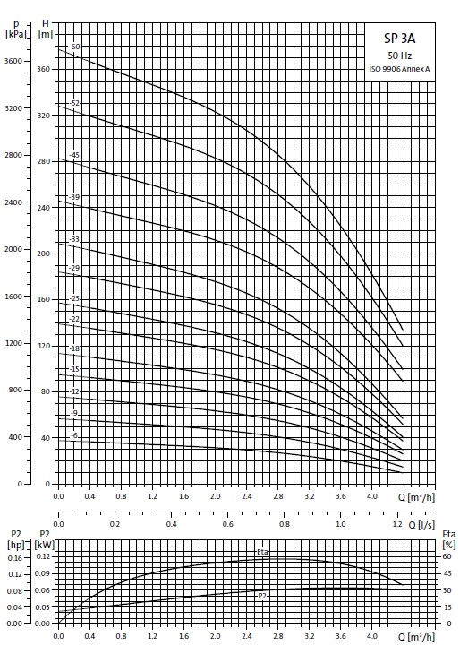 | Type de pompe immergée | SP 3A (1 à 4 m3/h) |