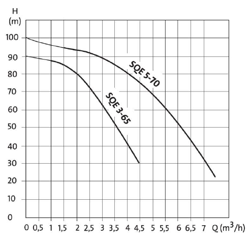 Débit : 1 à 6 m3/h - Hmt : 30 à 96 m - Puissance : 1 à 1.6 Kw