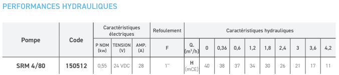 Débit : 0 à 4,2 m3/h - Puissance : 0.55 Kw -