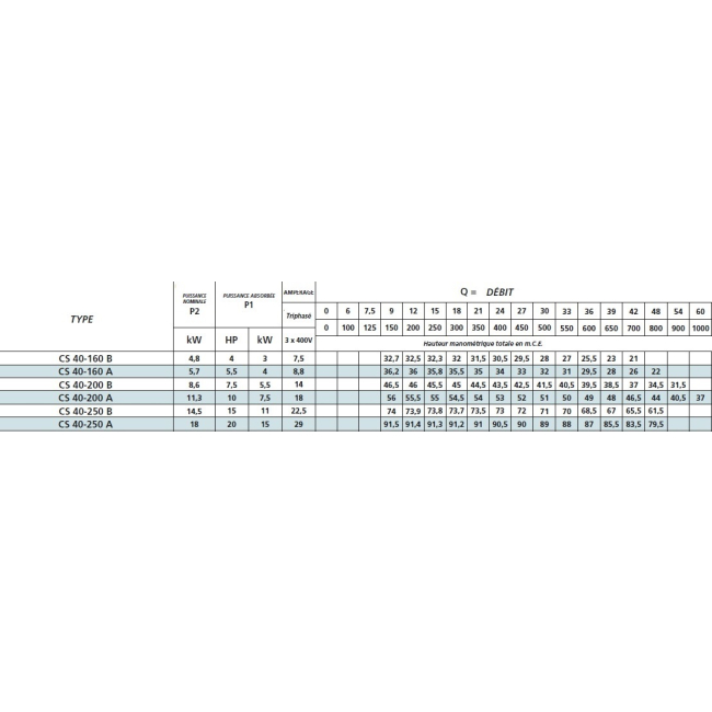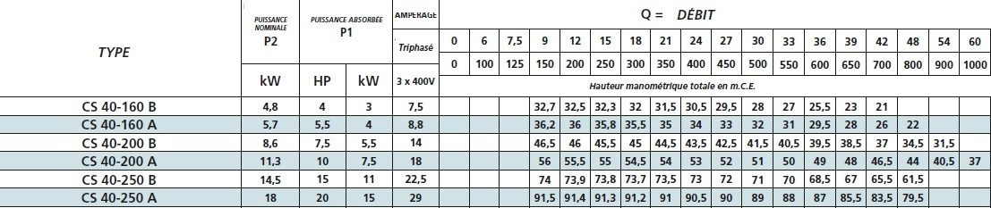 | Type de pompe de surface | CS 40 (9 à 40 m3/h) |