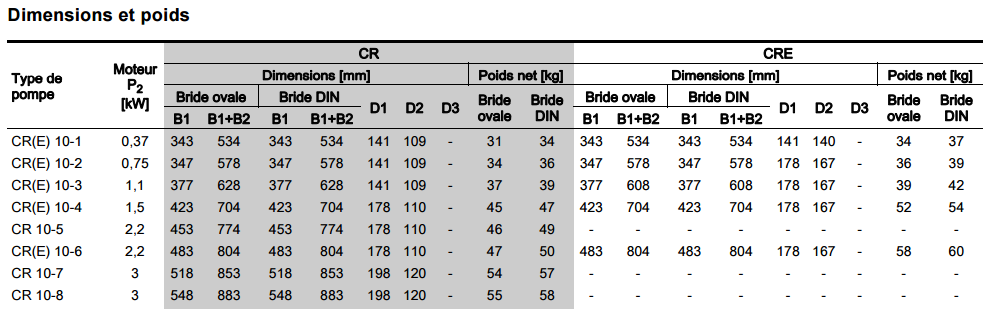 | Référence pompe surface | CR 10-3 Grundfos, CR 10-4 Grundfos, CR 10-5 Grundfos, CR 10-6 Grundfos, CR 10-7 Grundfos, CR 10-8 Grundfos |