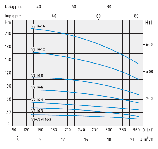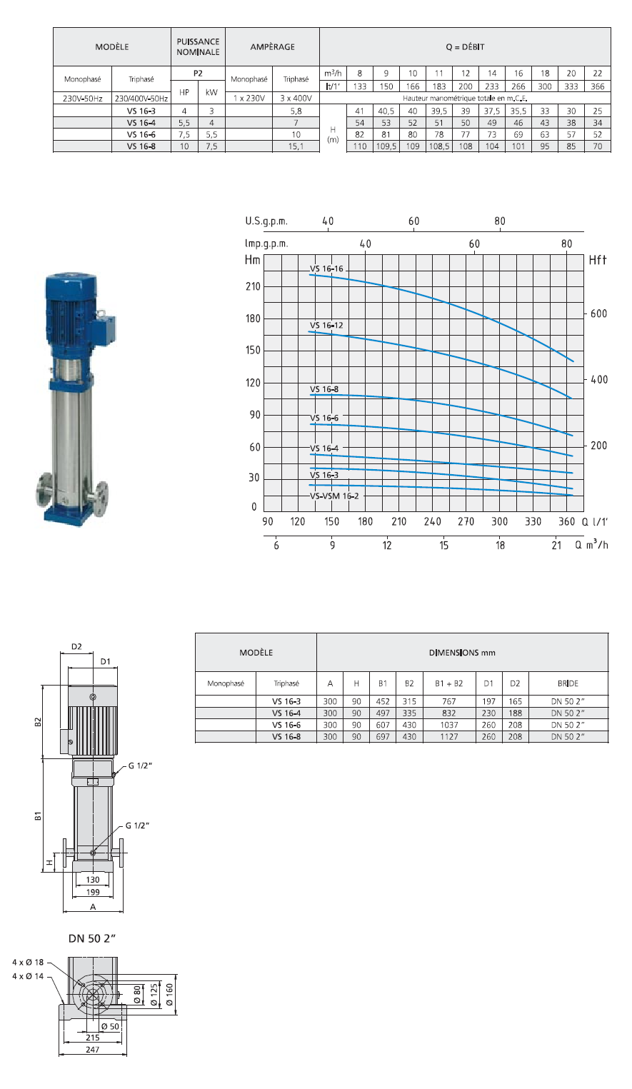 | Référence pompe surface | VS 16-3, VS 16-4, VS 16-6, VS 16-8 |