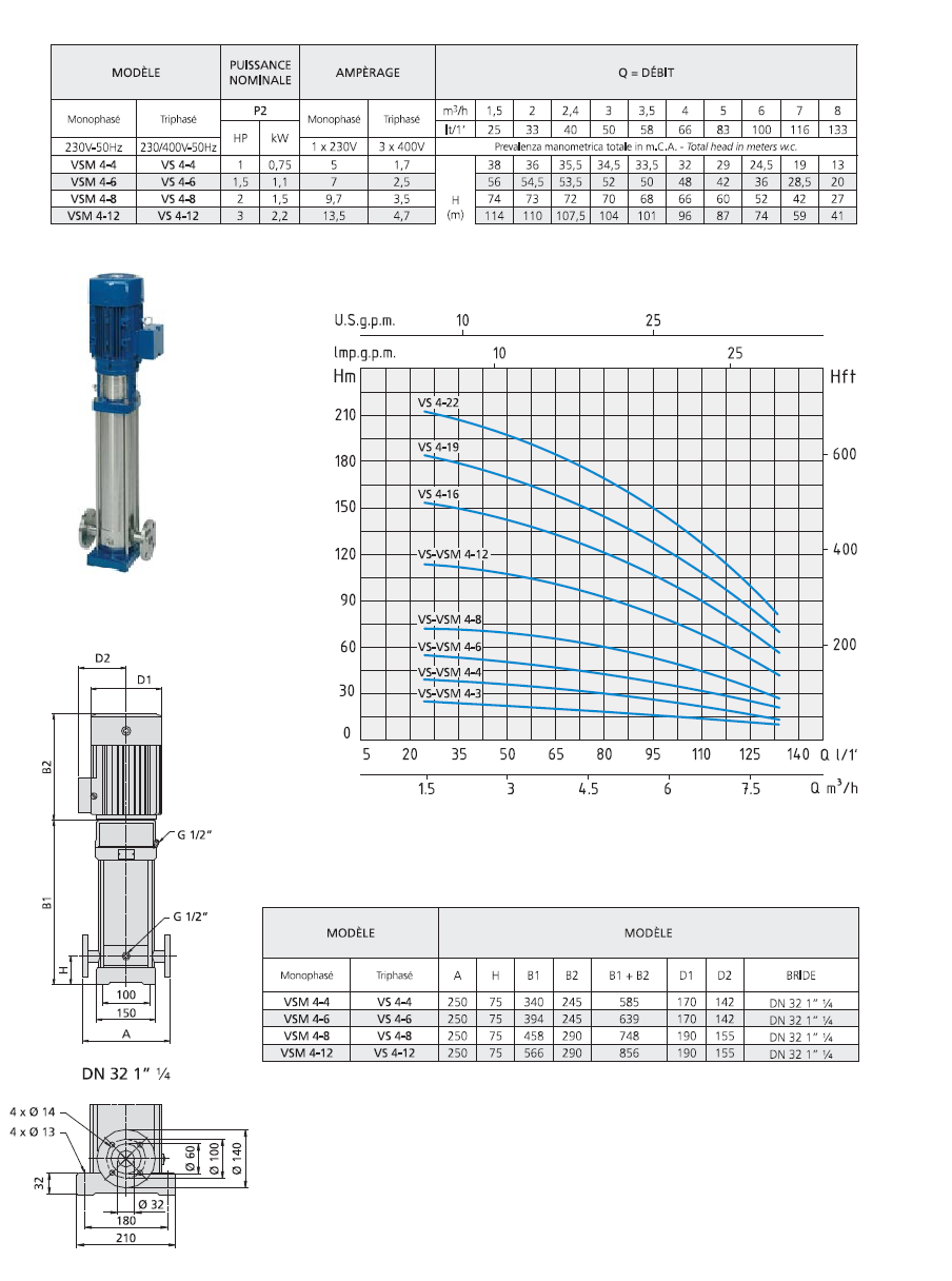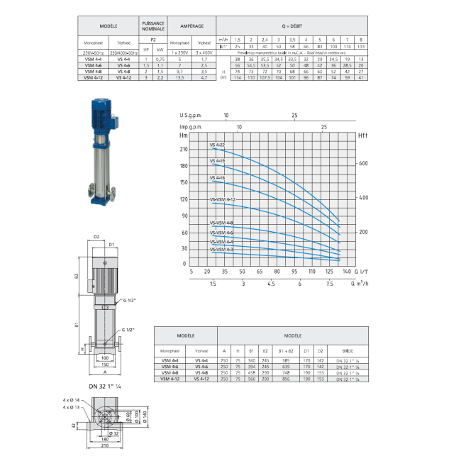 | Référence pompe surface | VSM 4-4, VSM 4-6, VSM 4-8, VSM 4-12, VS 4-12 |