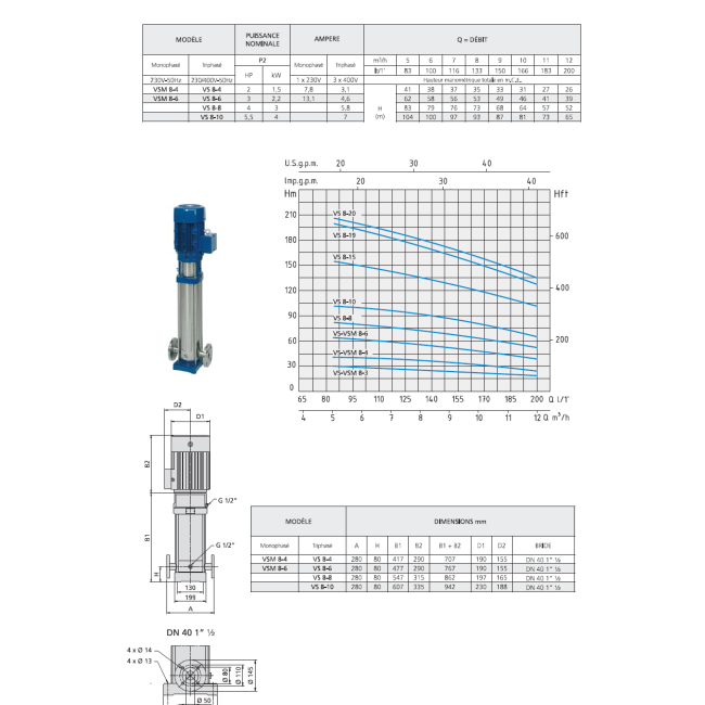 | Référence pompe surface | VSM 8-4, VS 8-4, VSM 8-6, VS 8-6, VS 8-8, VS 8-10 |