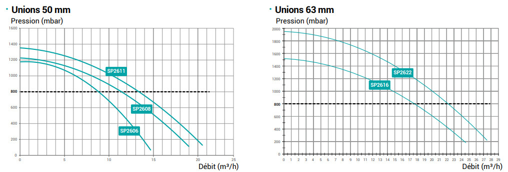 - Adaptateurs fournis : 2" / 50 mm et 63 mm selon le modèle