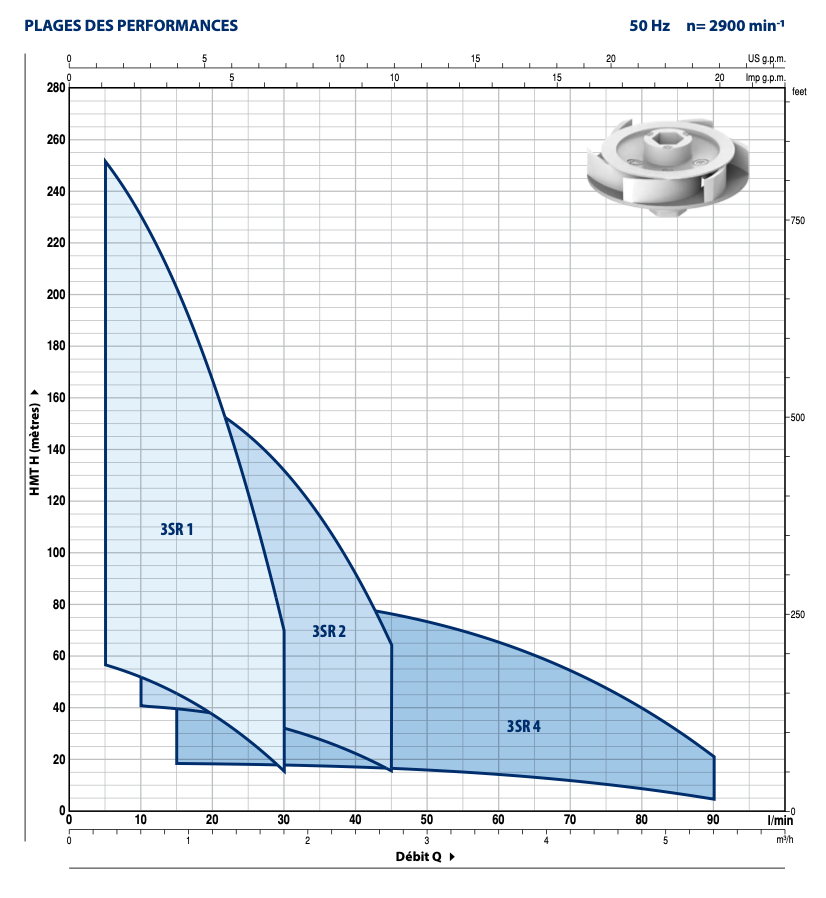 Les composants hydrauliques, couplés à un moteur électrique à haut rendement, rendent la pompe électrique 3SR extrêmement efficace dans la catégorie des 3”.