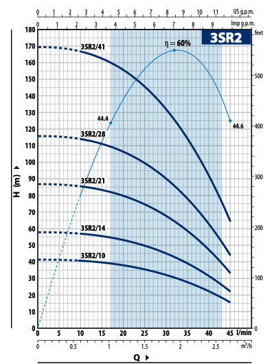 Des économies d’énergie sur l’utilisation de l’eau grâce au moteur à haut rendement. Leur conception compacte et leur légèreté permet d’ installer les 3SR dans des puits de 3 “ou plus.