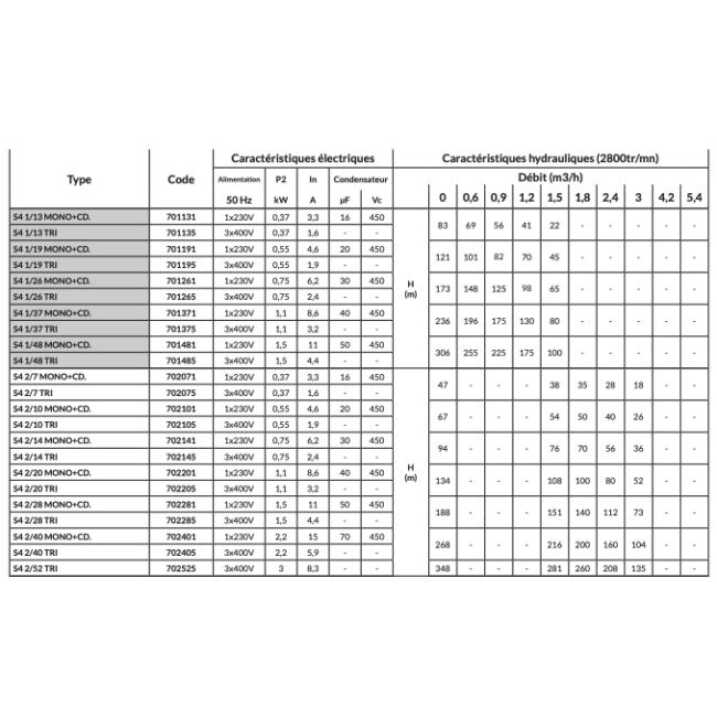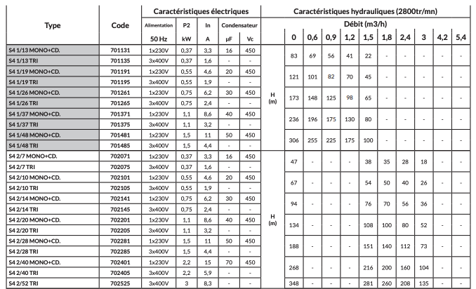 | Type de pompe immergée | S4 |