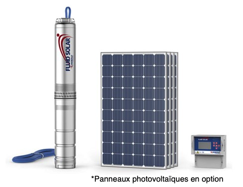 Non inclus Livré sans clapet, à prévoir en haut de forage. Panneaux photovoltaïques à prévoir (voir documentation)