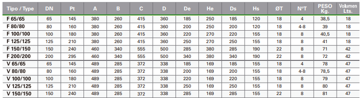 | Types de filtres | PF65 DN65/65, PF80 DN80/80, PF100 DN100/100, PF125 DN125/125 |