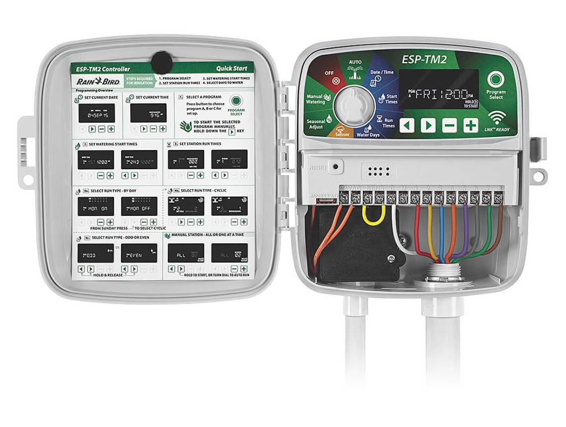 Le programmateur ESP-TM2 Extérieur de Rain Bird est la solution idéale pour automatiser l'arrosage de jardins résidentiels, de petits parcs ou d'espaces commerciaux, même dans les conditions les plus exigeantes. Conçu pour une installation en extérieur, il offre une fiabilité à toute épreuve, une grande facilité d'utilisation et une capacité d'extension allant de 4 à 12 stations, pour s'adapter à la croissance de votre aménagement paysager.