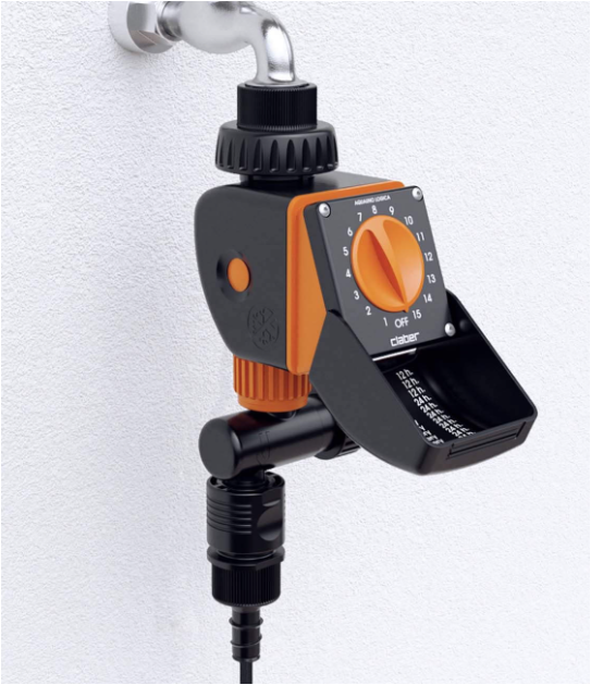 Programmateur d'arrosage très simple d'utilisation grâce à sa manette de commande unique rotative, permettant de choisir parmi 15 programmes pré-enregistrés. Autonome, ce programmateur se visse directement sur le robinet pour une installation rapide et simple.
