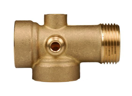 Raccord té laiton en 5 voies : prise contacteur et manomètre.