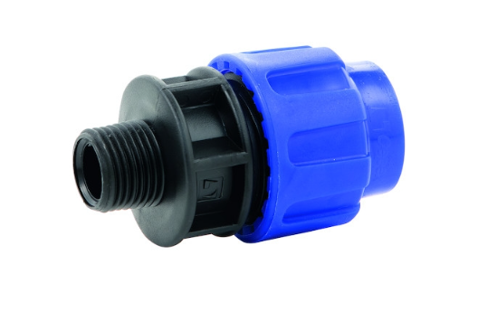 Raccord mâle à compression PEHD en polypropylène pour dérivations fiables et durables.