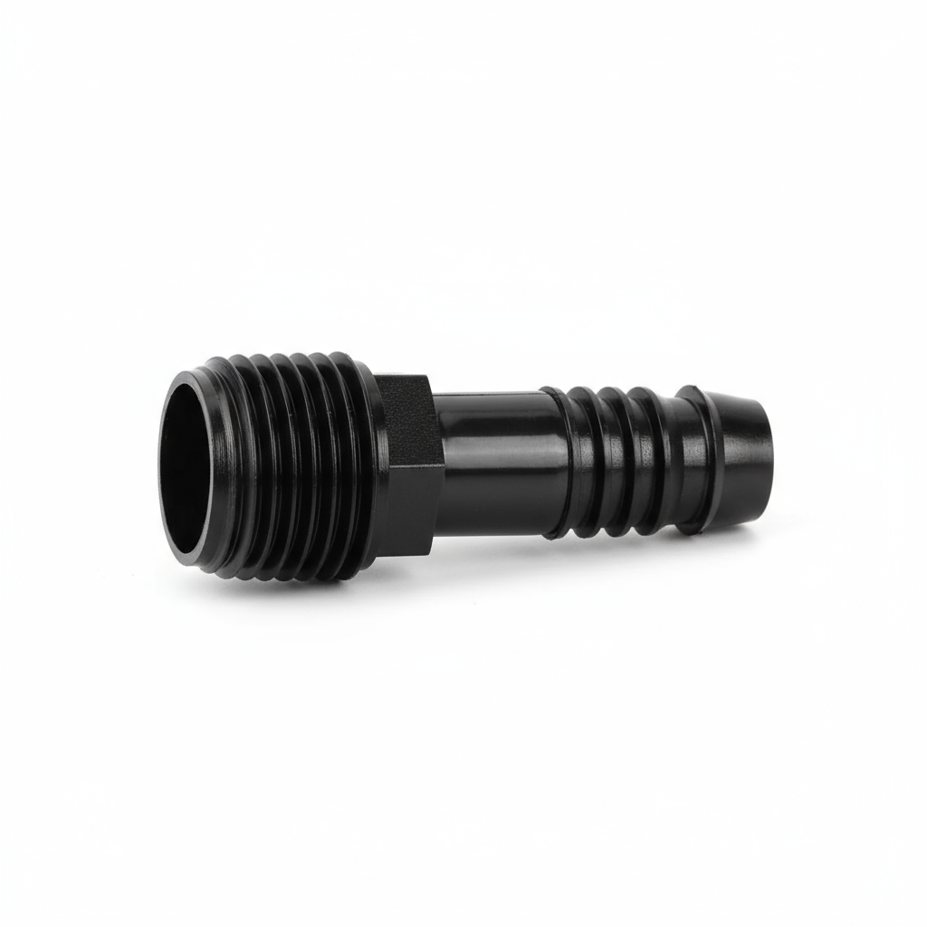 - Installation facile sans colle, outil ou collier de serrage. On insère le côté cannelé dans le tuyau flexible et on visse à la main.